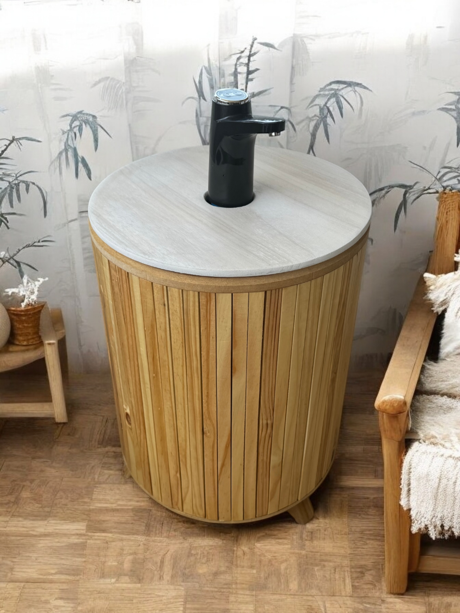 Funcionalidad y diseño se unen en nuestro Mueble para Bidón de agua Camel con Blanco, una opción personalizada que combina una base en tono camel (café claro) con una tapa en blanco, dándole a tu espacio un toque único y con estilo.