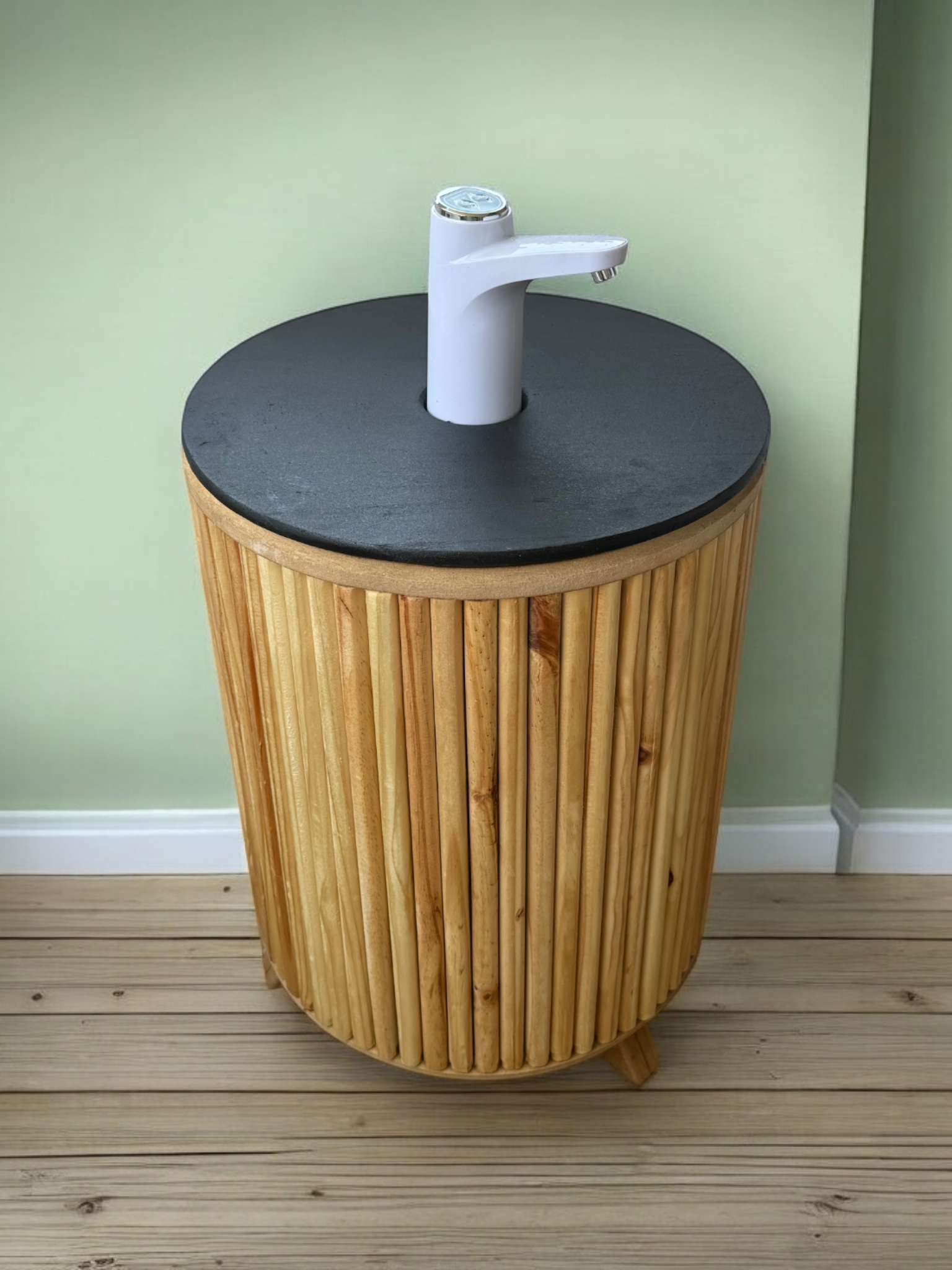 Funcionalidad y diseño se unen en nuestro Mueble para Bidón de agua Camel con Negro, una opción personalizada que combina una base en tono camel (café claro) con una tapa en tono negro, dándole a tu espacio un toque rústico y armonioso.
