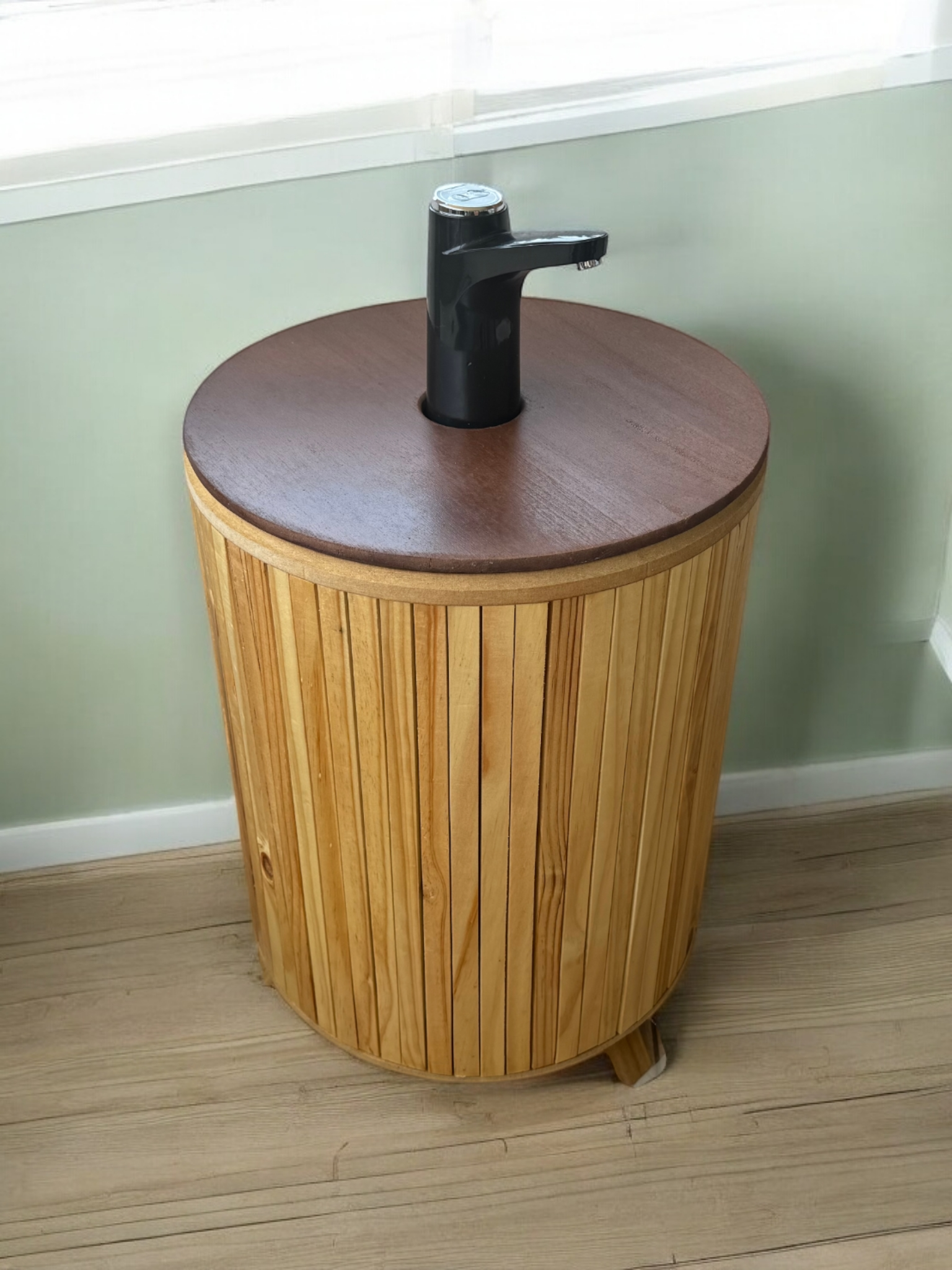 Funcionalidad y diseño se unen en nuestro Mueble para Bidón de agua Camel con Ngal, una opción personalizada que combina una base en tono camel (café claro) con una tapa en tono nogal, dándole a tu espacio un toque rústico y armonioso.