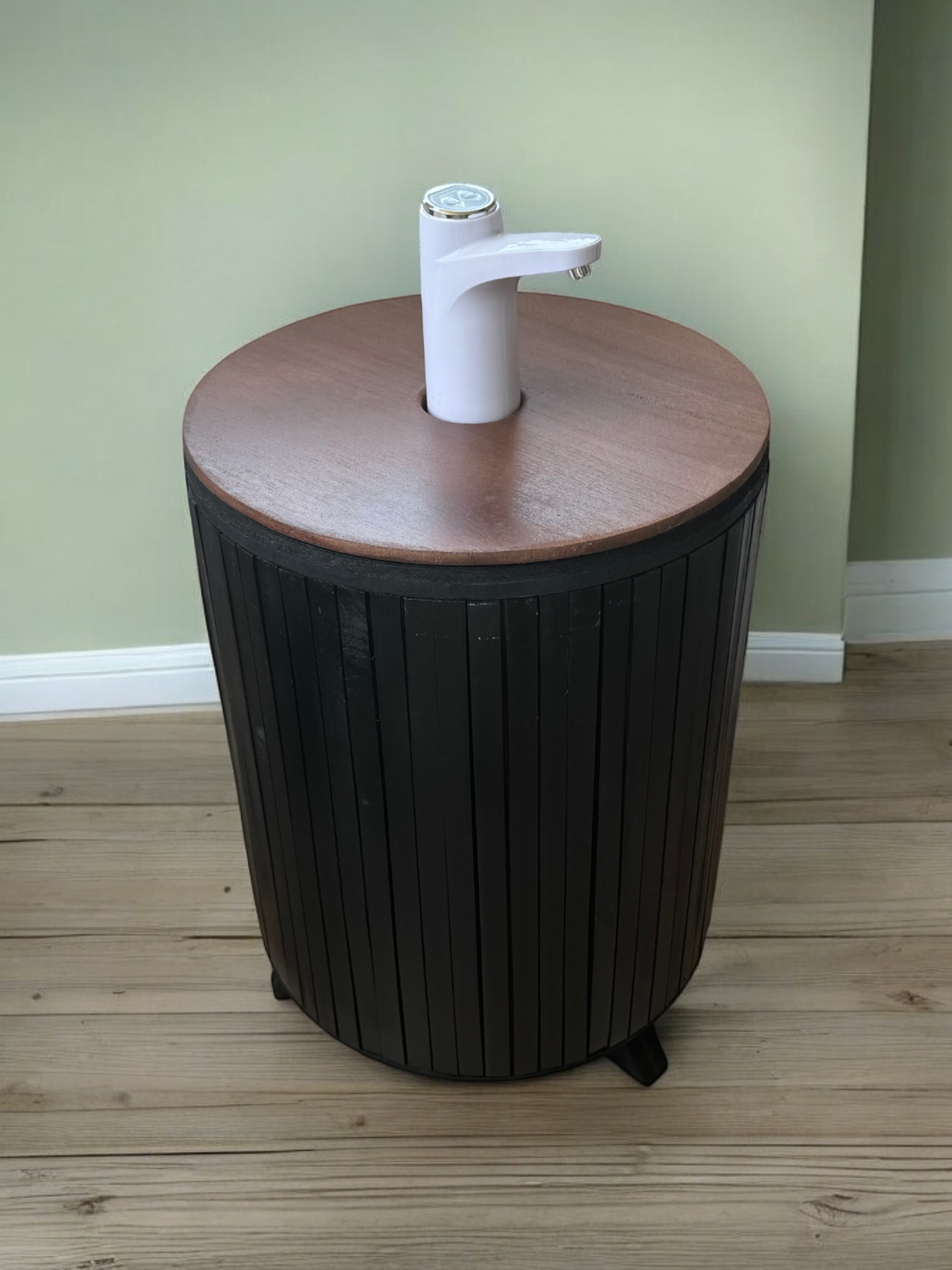 Funcionalidad y diseño se unen en nuestro Mueble para Bidón de agua Negro con Nogal, una opción personalizada que combina una base negra con una tapa en tono nogal, dándole a tu espacio un toque único y elegante.